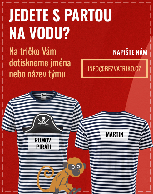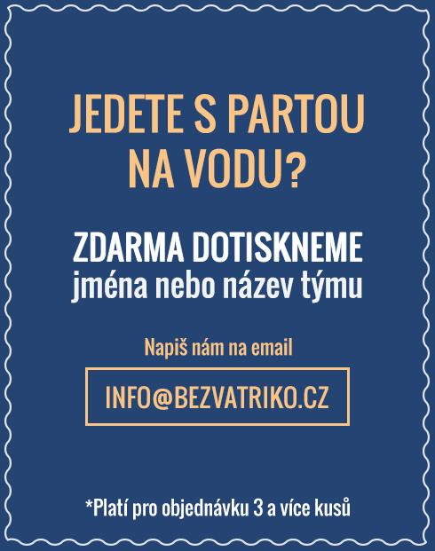 Jedete na vodu v celé partě? Slaďte si trička. Vyberte si jednu variantu v různých barvách, nebo dokonce úplně stejná trika pro vodáky. Při hromadné objednávce ušetříte minimálně na poštovném. Kromě toho je možné si na tričko dotisknout ještě jméno, případně název vodáckého týmu. Vepředu můžete mít vtipný nápis a vzadu jméno.